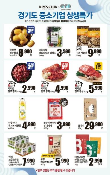 기획전을 통해 킴스클럽은 경기도 중소기업의 농산품(계란, 쌀, 과일류, 한우)과 식품, 주방용품 등 20종을 최대 50% 할인된 가격에 판매한다.