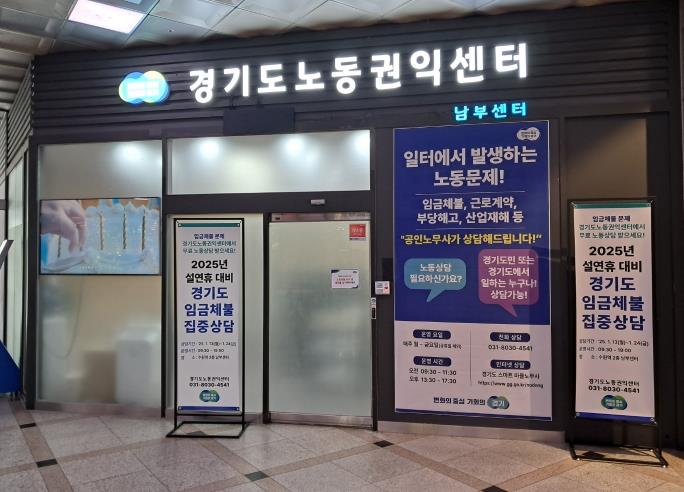 상담은 수원역 2층에 위치한 경기도노동권익센터 남부센터에서 24일까지 매일 오전 9시 30분부터 저녁 7시까지 운영된다. 또한 ▲의정부역 ▲서정리역 전철역에서 지역 노동권익센터와 협력해 찾아가는 상담소를 기간 내 2회 운영하며, 설 연휴 기간(1.28.~1.30.) 동안 유선 상담도 가능하다.