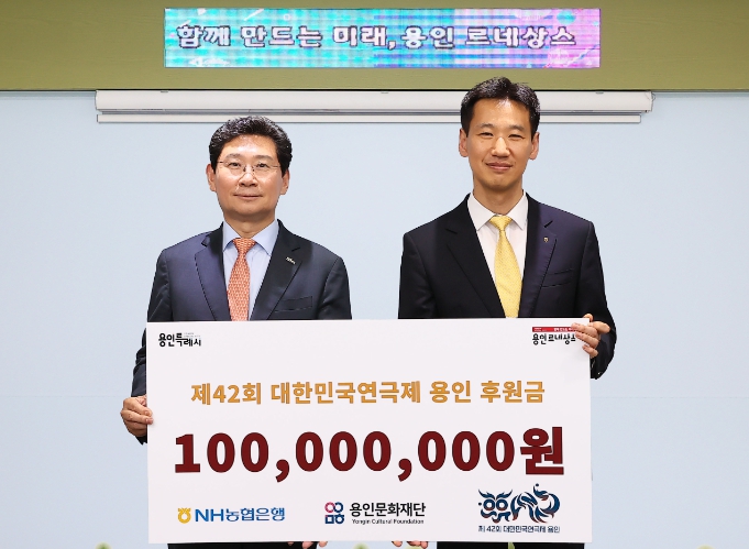 [뉴스서울] 용인특례시는 23일 NH농협은행 용인시지부가 ‘제42회 대한민국연극제 용인’의 성공적인 개최를 위해 ‘제42회 대한민국연극제 용인 집행위원회’에 1억원을 후원했다고 밝혔다.