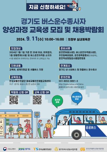 [뉴스서울] 경기도는 9월 11일 오전 10시부터 오후 4시까지 의정부 실내체육관에서 ‘경기도 버스 운수종사자 채용박람회’를 연다.