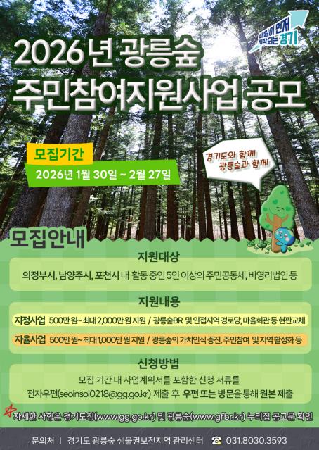 [뉴스서울] 경기도가 광릉숲 생물권보전지역 활성화를 위해 2026년 광릉숲 주민참여지원사업 참여자를 모집한다.