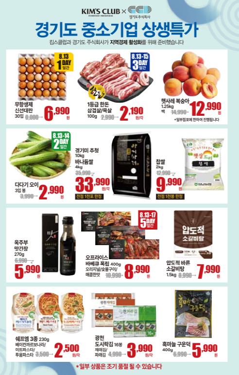 기획전은 13일부터 19일까지 킴스클럽 전 지점에서 진행된다. 경기도 소재 우수기업 베스트 상품 대전으로 총 24개 경기도 중소기업의 신선식품 (신선대란, 다대기오이), 가공식품(도시락김, 구운오리), 공산품(디퓨저, 도마) 등 약 50 여종의 다양한 상품을 최대 20% 할인 판매한다.