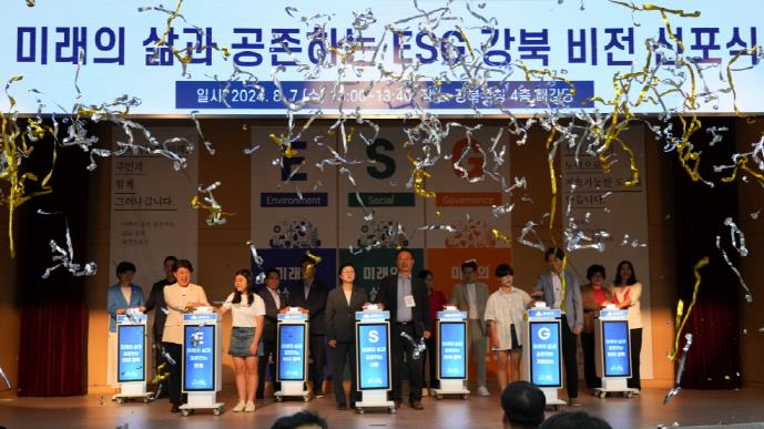 구는 강북형 ESG 기반 마련을 위해 민관협력을 강화하고자 지난 7일 강북구청 대강당에서 ‘미래의 삶과 공존하는 ESG 강북 비전 선포식’과 ‘지속가능발전 숙의공론장’을 개최했다.