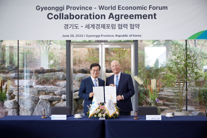 김동연 경기도지사는 지난 6월 28일 도담소(옛 도지사공관)에서 클라우스 슈밥 세계경제포럼(WEF) 회장과 이런 내용을 담은 ‘4차산업혁명센터 설립에 관한 협력협약서(CA.Collaboration Agreement)에 서명했다.