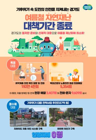 [뉴스서울] 경기도는 5월 15일부터 10월 15일까지의 2024년도 여름철 자연재난 종합대책 기간에 강화된 폭염 대책과 선제적인 풍수해 대책으로 피해를 최소화했다고 21일 밝혔다.