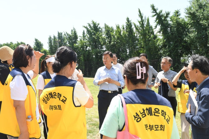 [뉴스서울] 신상진 성남시장은 6월 13일 성남혜은학교 학부모 20여 명과 현장 소통 간담회를 하고, 학교와 단대공원 내 다목적구장을 잇는 통행로를 연말까지 조성하기로 했다.