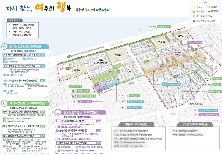 또한 관광객을 위한 여행 스테이션 조성과 남한강 테라스, 여주 잇길, 수선거리 등 지역자원을 활용한 보행환경개선 사업도 추진해 주민과 관광객 유입을 촉진하고 상권 활력 회복을 위한 기반을 마련할 계획이다.
