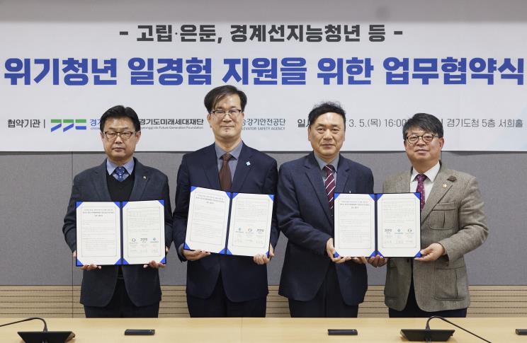 [뉴스서울] 경기도와 경기도미래세대재단, 한국승강기안전공단 경인지역본부는 5일 경기도청 서희홀에서 ‘위기청년 일경험 지원을 위한 업무협약’을 체결했다.
