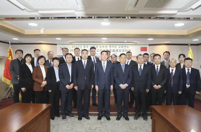 산둥성 공무원 연수단은 왕춘허(王春河) 중국공산당 산둥성위원회 조직부 부부장을 중심으로 대표단 3명과 연수단 15명 등 총 18명으로 구성됐다. 이번 연수에서 경기도의 탄소중립(RE100·신재생에너지·자원 순환 등) 정책과 디지털 전환(인공지능·모빌리티·스마트시티 등) 관련 전문가의 강의를 수강한다.