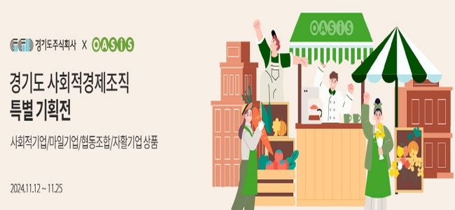 경기도주식회사는 오는 11월 25일까지 오아시스마켓과의 협업을 통해 각종 농·수산물 등 도내 다양한 약 100여개의 사회적경제제품을 판매하는 기획전을 추진한다고 12일 밝혔다.
