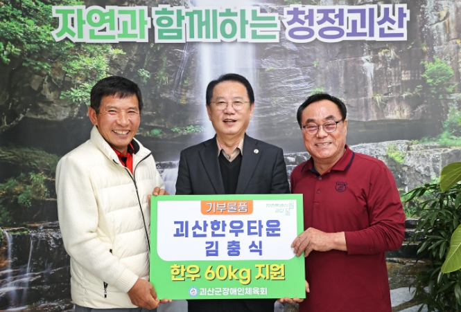 [뉴스서울] 괴산한우타운이 지난 13일 괴산군장애인체육회에 840여만 원 상당의 한우 60㎏을 전달했다.