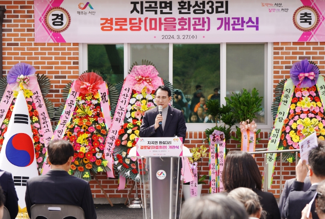 [뉴스서울] 충남 서산시는 27일 지곡면 환성3길 137 일원에서 환성3리 경로당 개관식을 개최했다고 밝혔다.