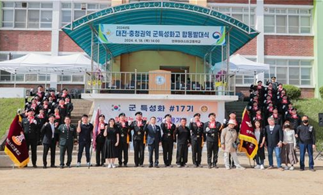 이번 합동발대식은 대전·충청권역 7개교의 첫 번째 발대식이며 국방부 지정 임기제부사관 전문양성기관 지정 전국 44개 군(軍) 특성화고 중에서 대전권역의 동아마이스터고, 충남기계공고, 대전도시과학고와 충청권역의 연무마이스터고, 서산공업고, 예산전자공고, 증평공업고 등 7개 학교가 합동발대식 행사에 참가했다.