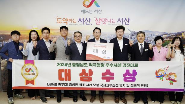 이완섭 서산시장은 대상 수상을 기념하며 “사통팔달 교통인프라를 구축하기 위한 적극행정의 결과”라며 “충청권 최초 서해를 깨운 국제 크루즈선 취항이 충남도에서 빛나는 우수사례로서 남길 바란다”라고 말했다.