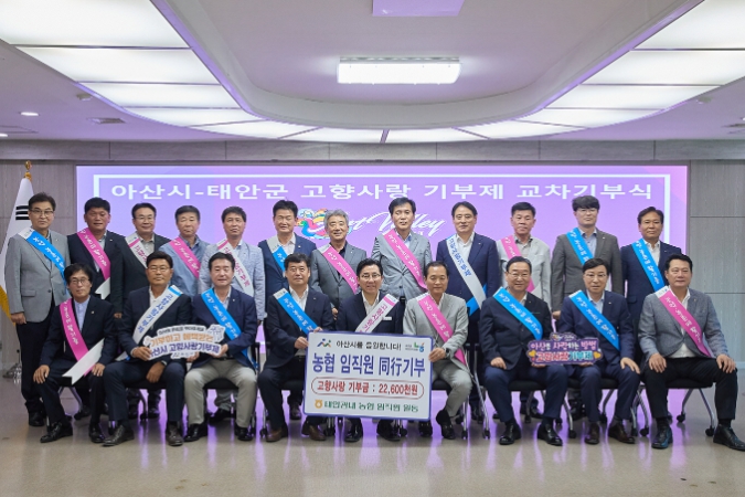 이번 교차기부에서 아산시 농협 임직원은 430여 명이 4천2백만 원 상당을 태안군에 기부했고, 태안군의 농협 임직원 220여 명이 2천2백만 원 상당을 아산시에 기부했다.