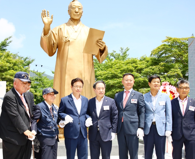 | ▲ 지난해 7월 이승만 전 대통령 동상 제막식에 참석한 김재욱(오른쪽 3번째) 칠곡군수가 이철우 경북도지사를 비롯한 주요 내빈과 기념 촬영을 하고 있다. |