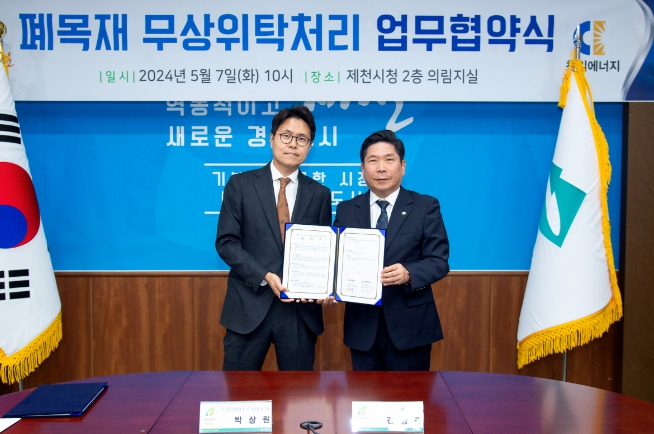 [뉴스서울] 제천시는 7일 (주)천일에너지와 자원관리센터 폐목재 무상위탁처리 업무협약을 체결했다.