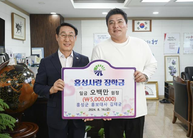 군에 따르면 16일 오후 2시 김태균 해설위원은 홍성군수실에서 이용록 홍성군수에게 홍성사랑장학금 500만원을 기탁하는 시간을 가졌으며, 2024KBO 시즌이 종료되는 시점을 고려해 결성면에 위치한 만해 야구장에서 제2회 김태균 야구캠프를 진행하기로 했다.