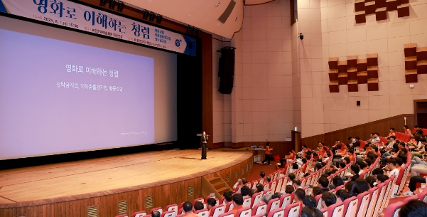 이번 교육은 한국 청렴리더십 연구소 대표 김정현 강사를 초빙해 '영화로 이해하는 청렴'이라는 주제로 청탁금지법, 이해충돌방지법, 공무원 행동강령 및 갑질예방교육을 실시했다.