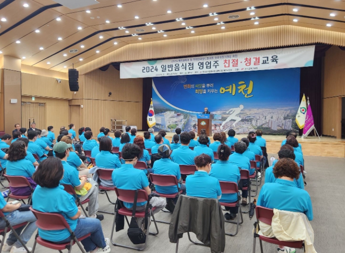 [뉴스서울] 예천군은 15일 오후 군청 대강당에서 일반음식점 영업주 100명을 대상으로 친절 ․ 청결 교육을 실시했다.