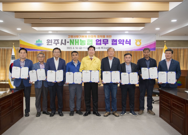 원강수 원주시장은 “원주 고향사랑기부제 활성화와 답례품 발굴에 항상 협력해주시는 NH농협은행과 지역 농·축협에 감사드린다.”며, “앞으로도 상호 협력을 통해 원주 고향사랑기부제가 성공적으로 정착할 수 있도록 최선을 다하겠다.”고 전했다.