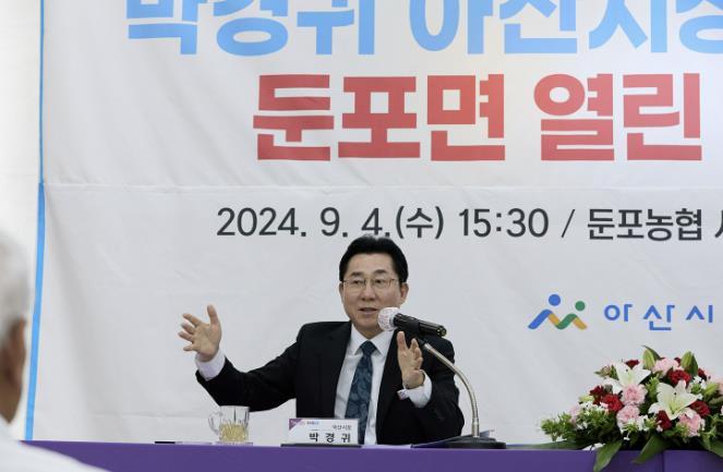 [뉴스서울] 박경귀 아산시장은 4일 둔포농협 서부지점 대회의실에서 ‘2024 하반기 둔포면 열린간담회’를 개최했다.