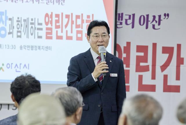 이날 간담회에는 아산시의회 홍성표 의장과 신미진 의원 등을 비롯한 송악면 기관단체장과 주민 100여 명이 참석해 지역발전을 위한 다양한 의견을 나눴다.