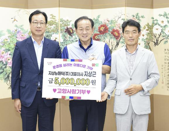 [뉴스서울] 문경시는 8월 20일, 지상뉴매틱(주)의 지상근 대표이사가 고향사랑기부금 최고액인 500만 원을 기탁했다고 밝혔다.