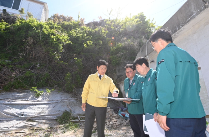 함명준 군수는 지난 2일, 작년 태풍 등으로 인해 피해가 발생했던 지역을 중심으로 대진4지구 급경사지 붕괴위험지역과 구성지구 산사태취약지역을 현장방문하여 피해 예방 사업 진행 상황을 확인하고 재난 대비 상황을 점검했다.