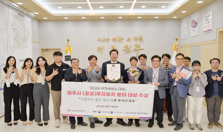▲ 원주시, 2024 국가서비스대상 '공공 투자유치 부문' 수상 |