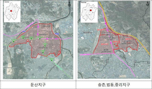 ▲ 대전시 노후계획도시정비 기본계획 수립 대상 위치도 |