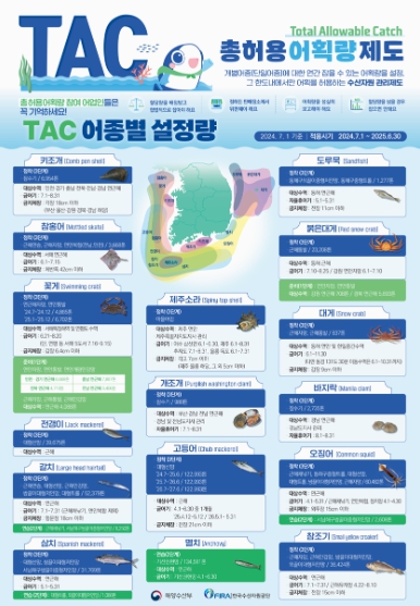TAC는 어종별로 자원평가를 거쳐 정한 어획량 내에서만 어획을 허용하는 제도로, 해양수산부는 지난해 9월에 모든 연근해 어업에 TAC를 도입하고, 기존의 불필요한 어업규제는 완화하는 “연근해어업 선진화 전략”을 수립한 바가 있다.