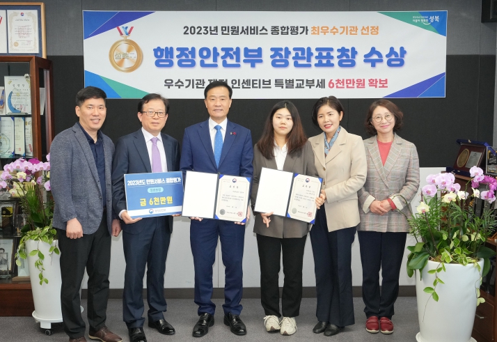 ▲ 성북구, 2023 민원서비스 종합평가 ‘행안부 장관 표창’ 수상 |