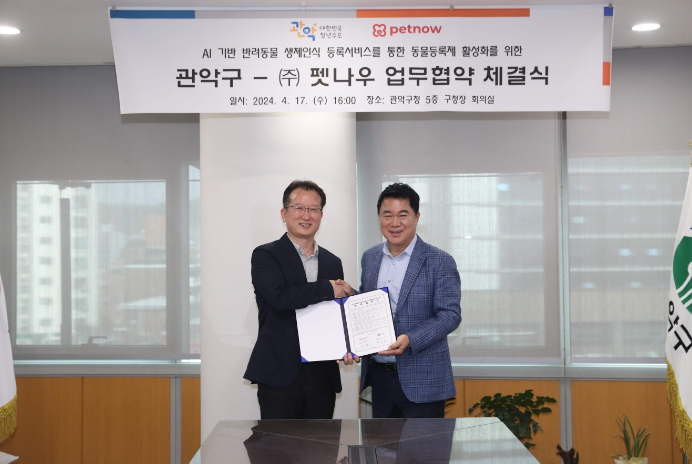 [뉴스서울] 관악구가 4월 17일, 동물등록제 활성화를 위한 시범사업 추진을 위해 ㈜펫나우와 업무협약(MOU)를 체결했다.