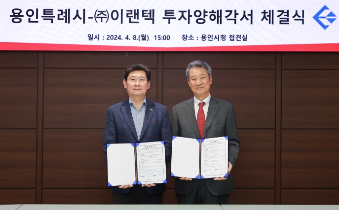 이날 양해각서 체결식엔 이상일 용인특례시장과 이세용 ㈜이랜텍 회장, 강정구 ㈜이랜텍 CFO 등이 참석했다.