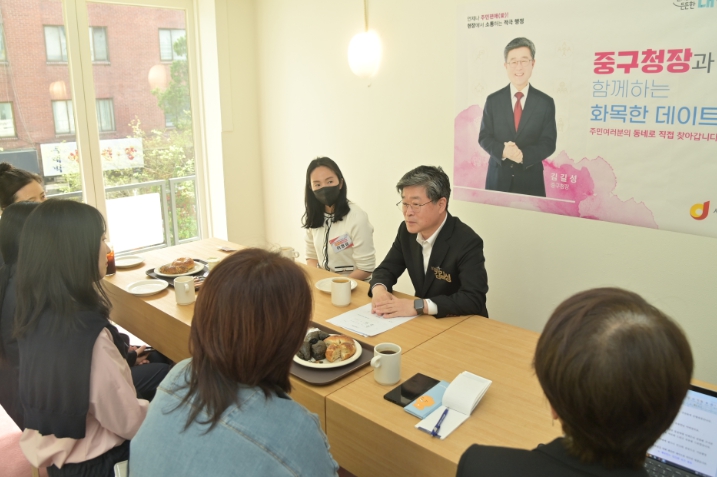 지난해 운영된‘1일 현장 구청장실’에 내실을 더한 심화 버전으로 구청장이 주민과 현안을 놓고 토론하며 문제 해결방안을 함께 고민하는 자리다. 올해부터는 직장인들도 참여할 수 있도록 저녁 시간대 위주로‘데이트’일정을 짰다. ‘AI 내 편 중구’에서도 주민 제안을 24시간 받고 있다.