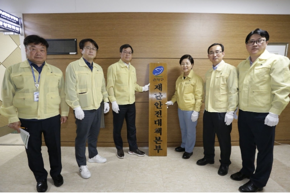 ‘재난안전대책본부‘는 호우, 태풍 등 기상 상황에 신속히 대응하고, 재난 발생 시 체계적이고 신속한 복구 활동을 위한 전담 기구다. 본부장은 구청장이고, 13개 분야 실무반 105명과 16개 동수방단 383명으로 구성돼 수방대책기간 중 24시간 운영한다.