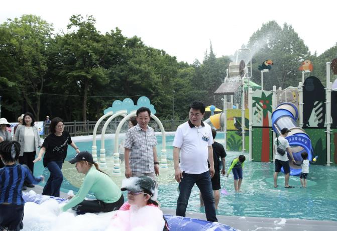 ▲ 관악산공원 물놀이장을 살펴보고 있는 박준희 관악구청장 |