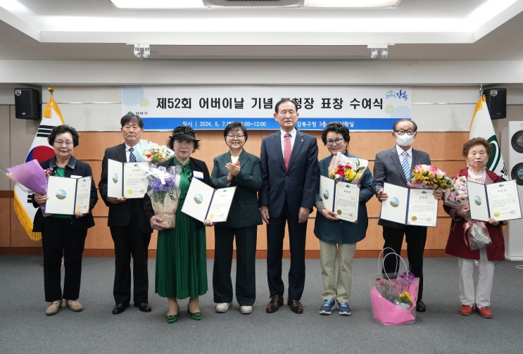 [뉴스서울] 서울 강북구는 지난 7일 구청 기획상황실에서 제52회 어버이날 기념 표창 수여식을 열고 평소 효행 정신을 실천하고 있는 구민을 격려하기 위해 효행자와 장한 어버이 등 15명에게 표창을 수여했다고 밝혔다.