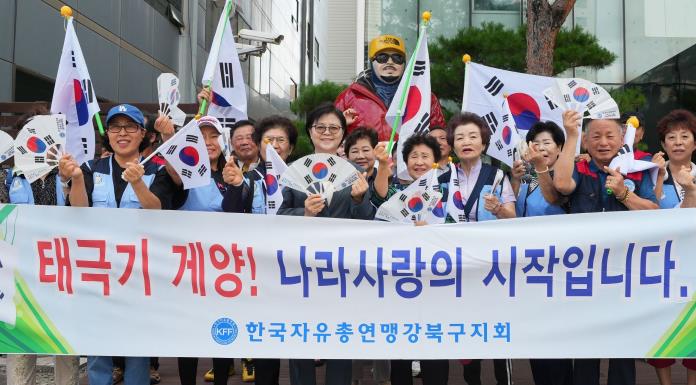 태극기달기 캠페인은 한국자유총연맹 강북구지회가 제헌절을 맞아 나라사랑 정신을 구민들과 공유하기 위해 전개한 것으로, 이날 이순희 구청장과 한국자유총연맹 강북구지회원들은 태극기가 새겨진 부채를 주민들에게 전달했다.