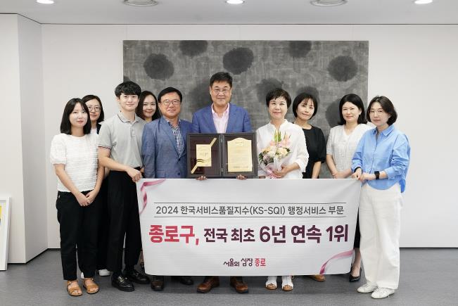 [뉴스서울] 종로구가 한국표준협회 주관 '한국서비스품질지수(KS-SQI)' 지방자치단체 부문에서 전국 최초 6년 연속 1위의 영예를 안았다.