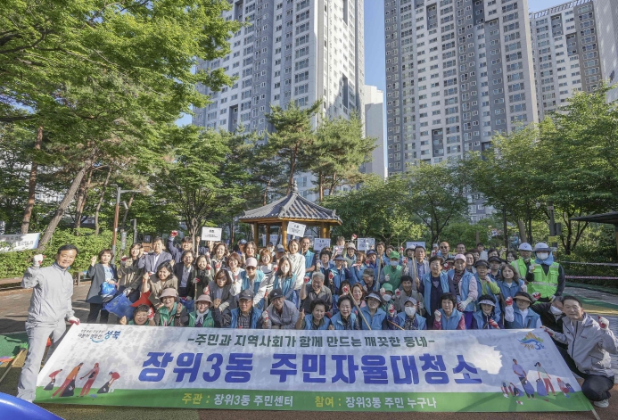 [뉴스서울] 서울 성북구 장위3동주민센터가 지난 27일 장위3동 마을공원에서 직능단체, 주민, 공무원, 환경미화 공무관 등 100여 명이 참여한 가운데 ‘주민과 함께하는 2024년 5월 장위3동 주민자율대청소’를 실시했다.