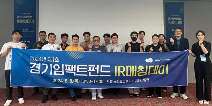 이번 투자상담회는 ▲㈜리맨 ▲㈜마인드허브 등 투자유망기업 12개사 관계자와 경기임팩트펀드 운용사인 ▲가이아벤처파트너스 ▲소풍벤처스 ▲엠와이소셜컴퍼니 ▲디쓰리쥬빌리파트너스 ▲마그나인베스트먼트 ▲카이스트청년창업투자지주 등 6개 투자사 관계자가 참여했다.