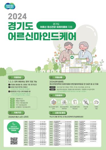 2013년부터 시작된 경기도 노인 우울증 치료비 지원사업은 경제적 어려움으로 우울증 치료를 받기 힘든 노인들에게 의료비를 지원해 지속적인 치료와 정신건강 관리가 가능하게 하는 데 중점을 두었다. 도는 치료 문턱을 낮추기 위해 2023년부터 소득기준을 없애고 치료비 지원액을 연 20만 원에서 36만 원으로 확대하는 등 치료사각지대를 줄여나가고 있다.