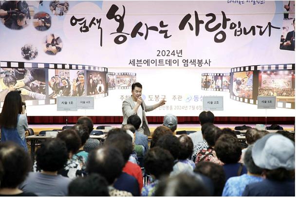 [뉴스서울] 도봉구가 지난 7월 6일 ㈜동성제약과 함께 도봉구청 2층 선인봉홀에서 저소득 어르신 200여 명을 대상으로 염색봉사를 진행했다.
