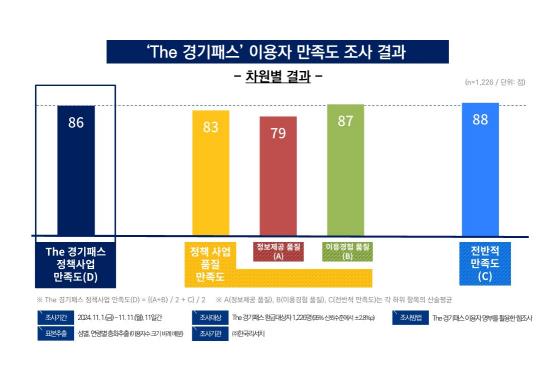 이번 조사는 경기도가 여론조사기관인 ㈜한국리서치에 의뢰해 지난 11월 1일부터 11일까지 The 경기패스 환급대상자 1천226명을 대상으로 웹조사로 진행했다. 표본오차는 95% 신뢰수준에서 ±2.8%p다.