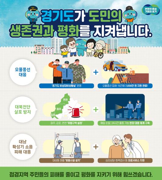 경기도는 도민의 안전을 최우선으로 이같은 상황을 수습하고 도민의 생존권과 평화를 지켜내기 위한 각종 지원책을 마련했다.