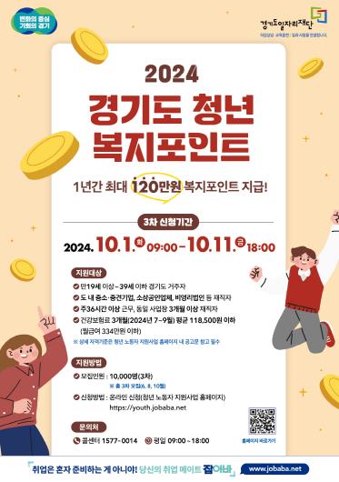 [뉴스서울] 경기도가 청년 노동자들의 복리후생 개선과 일자리 미스매치 해소를 위한 ‘청년 복지포인트’ 지원사업의 3차 참여자 1만 명을 10월 1일부터 11일까지 모집한다.