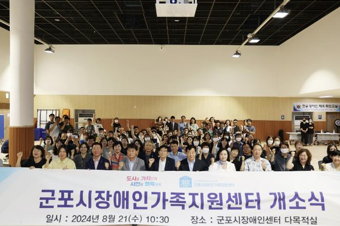 이날 개소식에는 하은호 군포시장, 김귀근 군포시의회 의장, 장애인 당사자와 가족, 유관 기관 관계자 등 100여 명이 참석한 가운데 센터 소개, 축사, 기념촬영, 테이프 커팅식 순으로 진행됐다.