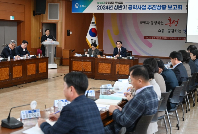 [뉴스서울] 홍성군은 민선8기 공약이행률이 54%를 보이며 순항 중인 가운데, 26일 군청 대강당에서 2024년 상반기 민선8기 공약사업 추진상황 보고회를 개최했다.